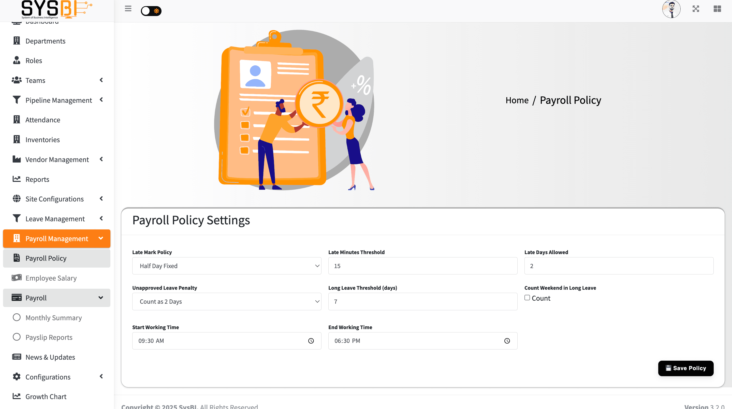 The Custom Payroll Management System is a fully integrated HR payroll management system tailored for managing employee compensation within Sysbi CRM. Designed to streamline payroll operations, it automates salary calculations, tax deductions, and payslip generation, while ensuring compliance with local regulations — making it the best HR and payroll software choice for modern businesses.